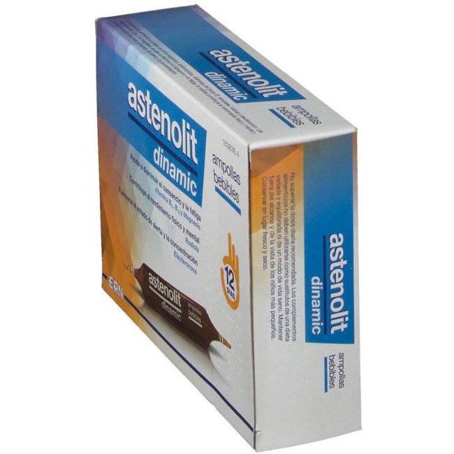 Astenolit Dinamic es un complemento alimenticio a base de vitaminas y minerales para combatir el cansancio. Astenolit Dinamic es un complemento alimenticio a base de vitaminas y minerales para combatir el cansancio. El complemento alimenticio de Astenolit Dinamic son unas ampollas bebibles que tienen como objetivo eliminar el cansancio y la fatiga. Para ello cuentan con Vitamina B6, B12 y Magnesio, conocidos por su capacidad para disminuir la fatiga, Rodiola, muy empleado para conseguir un mayor rendimiento físico y mental, y Eleuterococo, que favorece el estado de alerta y la concentración. Consejos de uso: Tomar dos cápsulas al día.