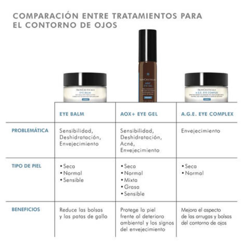 A continuación, te presentamos los tres productos estrella de SkinCeuticals para el contorno de ojos: AOX Eye Gel, Eye Balm y AGE Advanced Eye. Cada uno está formulado para abordar problemas específicos, proporcionando soluciones efectivas y científicamente respaldadas para mantener la zona del contorno de ojos en su mejor estado.
