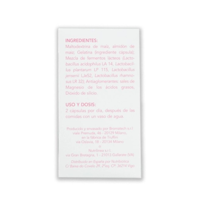 Femelle es un complemento probiótico formulado por Bromatech que contiene una combinación de cuatro cepas específicas de lactobacilos: Lactobacillus crispatus, Lactobacillus rhamnosus, Lactobacillus gasseri y Lactobacillus jensenii. Estas bacterias beneficiosas están diseñadas para mantener y restaurar el equilibrio de la microbiota vaginal, esencial para la salud urogenital femenina.