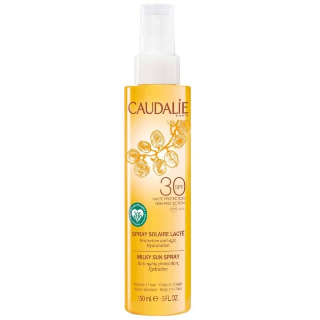 El spray para cuerpo con SPF30 de Caudalie corresponde a su nueva gama solar, aún más respetuosa con la piel y con el medio ambiente. Contiene un sistema innovador de filtros solares UVA/UVB fotoestables y termoestables, unido a un complejo antioxidante patentado con polifenoles de uva + Picea + Vitamina E y Agua de Uva para hidratar y calmar. No tóxico para el ecosistema marino. Altamente biodegradable.