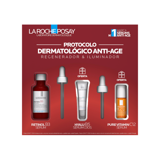 Un sérum dermatológico renegerador único, formulado con la molécula antiedad de referencia Retinol [Puro + Liberación Gradual] combinada con Vitamina B3, también conocida como niacinamida, que repara la piel.
