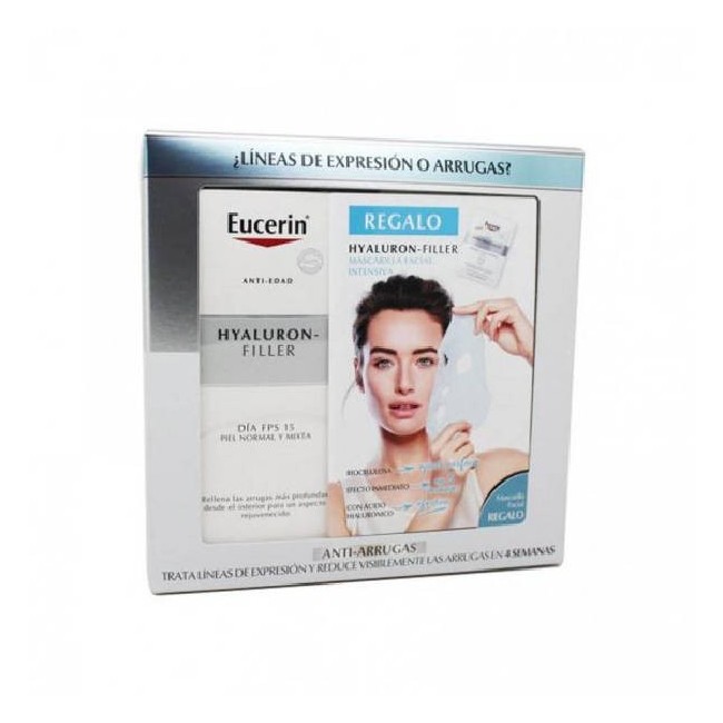 Ácido Hialurónico de alto peso molecular mejora la Hidratación y Alisa las capas externas de la piel, mientras que el ácido hialurónico de bajo peso molecular, que es 40 veces más pequeño, penetra hasta las capas profundas de la epidermis donde se generan las arrugas profundas. Glicina Saponina ofrece una solución concreta para Rellenar de manera visible las líneas de expresión y las Arrugas acentuadas. Favorece la producción de ácido hialurónico en las células de la capa dérmica en la que se forman las Arrugas profundas. Eucerin Hyaluron-Filler Día FPS 15 para piel normal y mixta, con SPF5 y filtro para rayos UVA, ofrece una eficaz protección frente al Envejecimiento prematuro de la piel y la acentuación de las Arrugas.