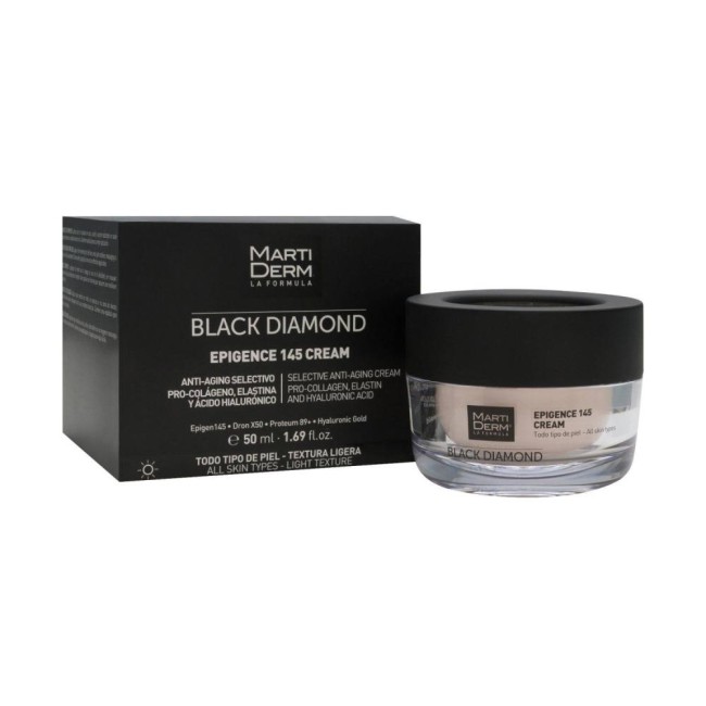 MARTIDERM Black Diamond Epigence 45 Crema facial Todo tipo de pieles 50 ml Epigence 145 Cream ha sido especialmente diseñada para reprogramar la piel y retrasar los signos de la edad. Sus ingredientes inteligentes actúan en tres niveles diferentes: les devuelven a las células su capacidad regeneradora.