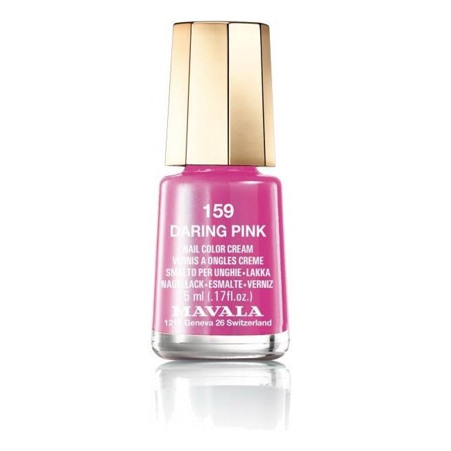 Mavala Esmalte de uñas Daring Pink 159 Mavala Color Da color a las uñas y permite que respiren de forma natural. Los esmaltes, con independencia de su calidad, tienden a secarse tarde o temprano. Los 'Mini's' de Mavala han sido diseñados para evitar tener que tirar un esmalte medio lleno porque se ha vuelto muy espeso. Se presentan en frascos de 5 ml, así que su pequeño tamaño además te permite poder llevar uno o varios 'Mini's' de viaje o en el bolso sin problemas.