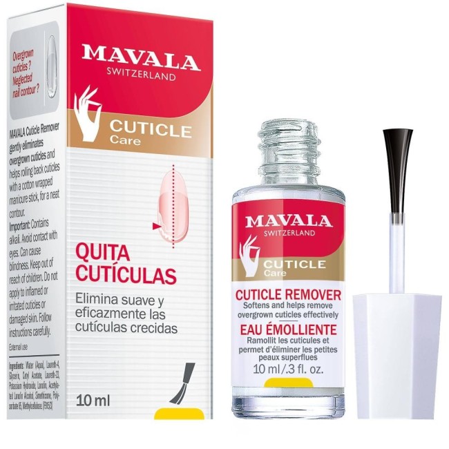 Maquillaje Tratamientos Mavala Quitacutículas 10 ml 10 ml El quitacutículas es una fórmula tixotrópica que permite eliminar suavemente las cutículas demasiado crecidas dejando un contorno de la uña nítido y uniforme. Limpia y elimina suavemente la cutícula y da forma al contorno de la uña. La piel muerta se ablanda y la piel superflua se desprende de la superficie de la uña. Modo de uso: Antes del esmalte una vez por semana, aplicar abundante producto alrededor de la uña, dejar actuar.