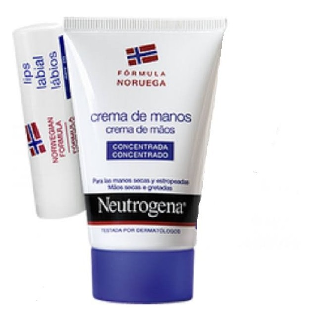 NEUTROGENADisponible por 7,19 € en farmaferoles.es, Neutrogena Crema de Manos con Perfume 50 ml + Stick Labial SPF-20 es una crema que hidrata intensamente, nutre, repara y protege las manos secas y estropeadas y el stick labial evita la sequedad y la formación de grietas en los labios. Propiedades: Hidrata, protegiendo de la sequedad y de las agresiones externas. Proporciona un alivio inmediato y duradero, incluso para las manos más secas. Con tan sólo una pequeña cantidad, alivia, protege e hidrata las manos más secas y agrietadas. Incluso en las condiciones más duras, deja las manos mucho más lisas y suaves. Neutrogena Fórmula Noruega crema de manos concentrada: permite más de 200 aplicaciones. Este protector labial en stick es óptimo para proteger los labios y otras zonas sensibles del rostro contra la acción de los rayos solares UVA y UVB. Además, trata eficazmente los labios secos y agrietados. PRINCIPALES BENEFICIOS Crema: Hidratación Reparación y protección Alivio inmediato Stick Labial: Alta protección solar Hidratación y alivio inmediatos Prevención SPF 20