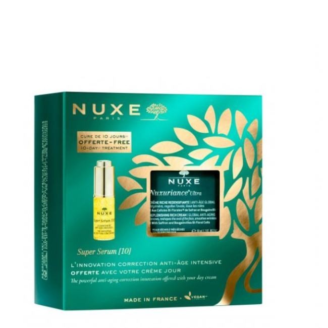 <p>Cofre exclusivo de nuxe que incluye la innovación correctora de la edad con el super sérum junto con tu crema favorita. El pack incluye:</p>