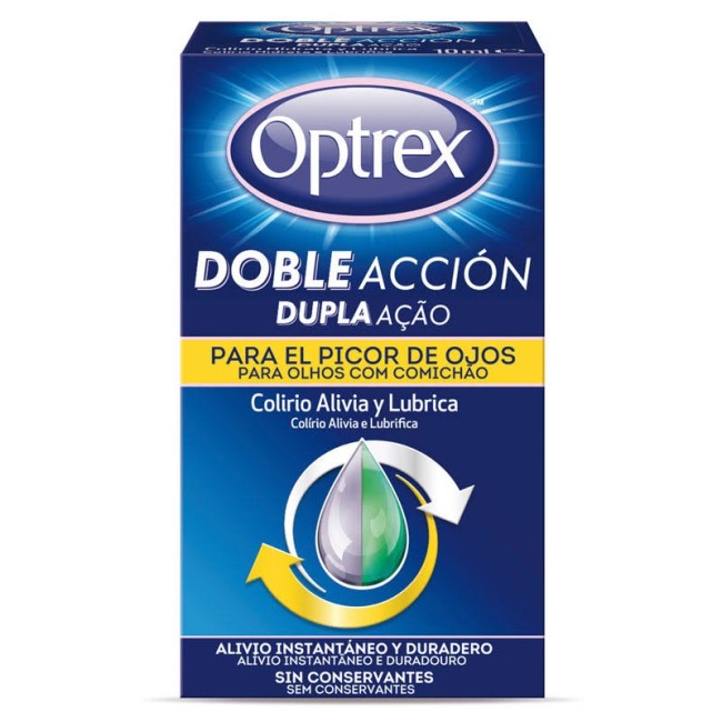 Colirio calmante para ojos irritados. Es una solución en forma de colirio, con la capacidad de aliviar el prurito en los ojos de una manera rápida y efectiva. Características de optrex picor Optrex doble acción picor,es una solución de colirio con doble acción que posee la capacidad de aliviar el prurito en los ojos de una manera rápida y efectiva. Lubrica la cavidad ocular, reparando la barrera natural que protege el ojo. Además lo mantienen lubricado por mucho más tiempo, evitando la resequedad y las lesiones. Es una solución transparente estéril, muy ligera capaz de brindar frescor a los ojos y aliviar la vista cansada durante más tiempo. No contiene fosfatos, ni conservantes. Posee un formato de monodosis que garantiza su conservación y la higiene requerida por la cavidad ocular. La caja contiene 20 envases de una dosis cada uno. es un producto que ha sido probado por oftalmólogos y de alta tolerancia, que puede ser utilizado por todo tipo de personas. ¿Para quién está indicado optrex? Optrex doble acción picor es un colirio que puede ser utilizado por todo tipo de personas, inclusive personas sensibles o que sean portadores de lentes de contacto. Es el producto ideal para las personas con vista cansada, que pasan largas horas frente a un computador. Lavarse las manos antes de utilizar, luego aplicar una o dos gotas de optrex doble acción picor en cada ojo, y luego pestañear suavemente para que el líquido sea distribuido de manera uniforme por toda la superficie.