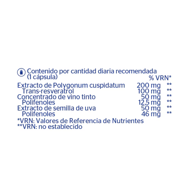 - Formulación Sinergética: La combinación de diferentes fuentes de antioxidantes polifenólicos amplifica sus efectos beneficiosos, proporcionando un soporte más completo que el resveratrol por sí solo.