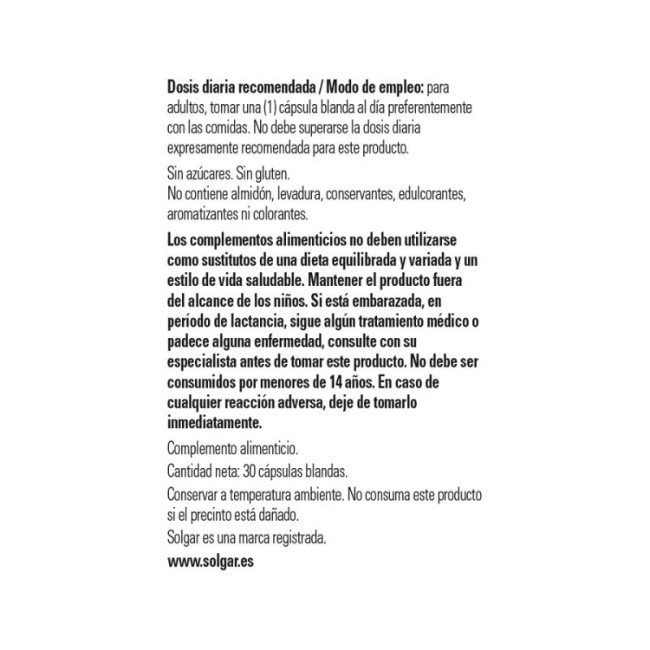 - Dosis recomendada: tomar 1 cápsula blanda al día, preferentemente con una comida para facilitar su absorción.