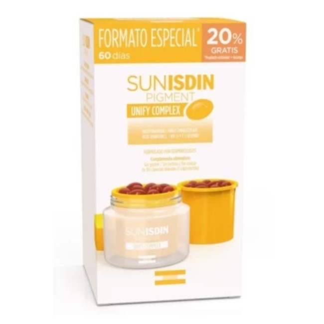 SUNISDIN Pigment es un complemento alimenticio diseñado para ofrecer una protección antioxidante desde el interior. Su fórmula única ayuda a mantener la piel en condiciones normales y la protege contra el daño oxidativo, promoviendo un aspecto saludable.