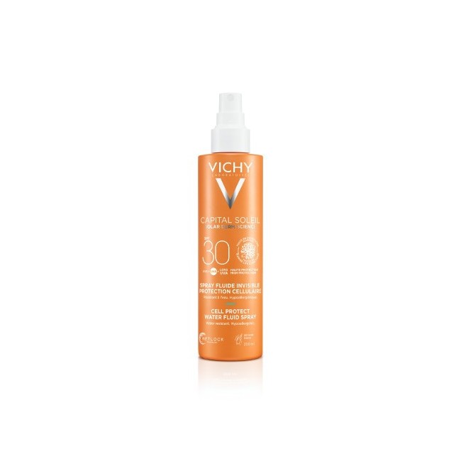 Vichy Capital Soleil Spray SPF30 es una nueva fórmula que protege la piel de la radiación solar, el cloro y la sal, además de hidratarla. Beneficios de Vichy Spray SPF30 200ml La protección de la piel frente a la radiación solar está adquiriendo más importancia estos últimos años y la gente, de una vez, se está concienciando de la necesidad que ello requiere. Hasta ahora teníamos en la cabeza que la protección de la piel frente a la radiación solar era una cosa única cuando íbamos a la playa o tomar el Sol, pero esta mentalidad está cambiando. No solo en verano hay que proteger la piel, sino también la resta del año ya que la piel tiene memoria y sin un cuidado diario podemos provocar problemas en un futuro. Vichy Capital Soleil Spray SPF30 es una nueva fórmula para proteger la piel de la radiación solar e hidratarla gracias al ácido hialurónico. Su textura ultraligera y de rápida absorción facilita su aplicación. No deja manchas blancas en la piel y es muy cómoda para toda la familia ya que resiste la arena, sal, cloro y viento. Apto para todo tipo de pieles, incluso las más sensibles que necesitan un cuidado especial. Deja una agradable sensación de bienestar y es resistente al agua. Para disfrutar este verano y mantener un buen estado de la piel, no lo dudes y confía en la gama de solares de la marca Vichy!