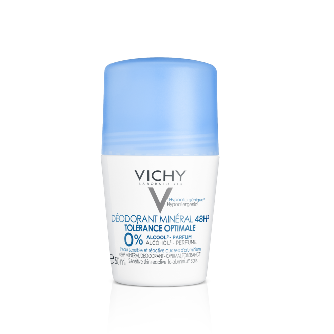 <p>El primer desodorante roll-on 48H e hipoalérgénico de Vichy con 0% de alcohol y perfume en envase reciclable. 50ml</p>