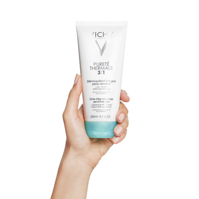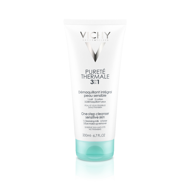 El Desmaquillante Integral Purete Thermale combina en un solo producto una leche limpiadora + un tónico + un desmaquillante de ojos. La asociación de agentes limpiadores ultra-eficaces y ultra-suaves en una leche-gel muy fresca, ofrece una limpieza y un desmaquillado ultra-rápido y ultra-fácil, que elimina eficazmente el maquillaje respetando tu piel sensible.