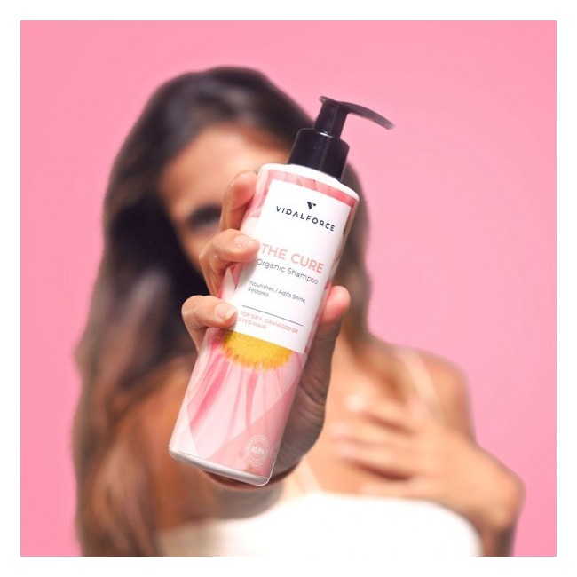 The Cure champú Combina de forma sublime 25 tecnologías clínicas naturales que restauran intensamente el tallo piloso y la película hidrolipídica del pelo, obteniendo un champú natural con acabado profesional. Su innovadora formula concentra potentes extractos como Alcachofa, Onagra, Arroz, Lino, Queratina Vegetal o Aloe Vera que combinados con el Ácido Hialurónico Vegano, mantienen la humedad en el núcleo del cabello rellenando las cutículas. La melena queda nutrida y flexible, brillando en cada movimiento.